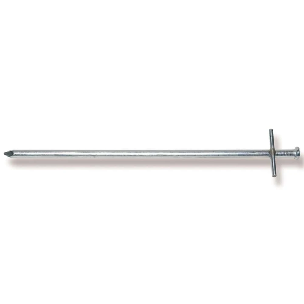 Round ground peg made of galvanized steel, strong and durable. Perfect for securely anchoring tents, pavilions, or other outdoor equipment.