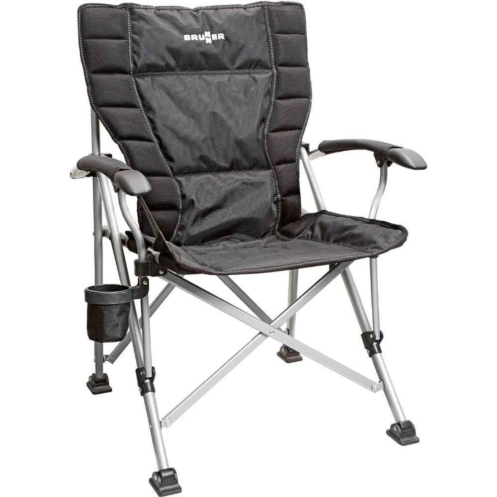 The folding chair from Brunner offers high comfort with a padded backrest and armrests. Ideal for outdoor activities or camping. The integrated cup holder adds extra convenience. Show more