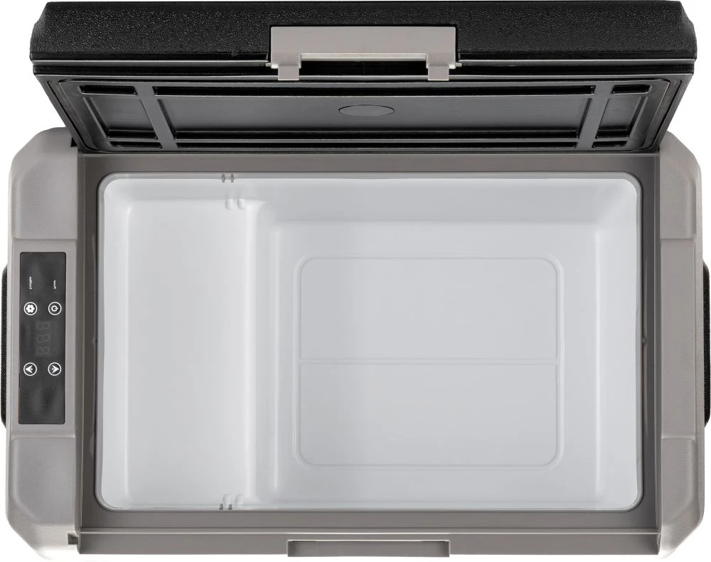 Cool box by Brunner with digital temperature display and reversible door. It offers a maximum cooling performance of up to -20 °C, is energy-efficient at 45 W, and is suitable for use in the car or at home. Ideal for camping or outings. Show more