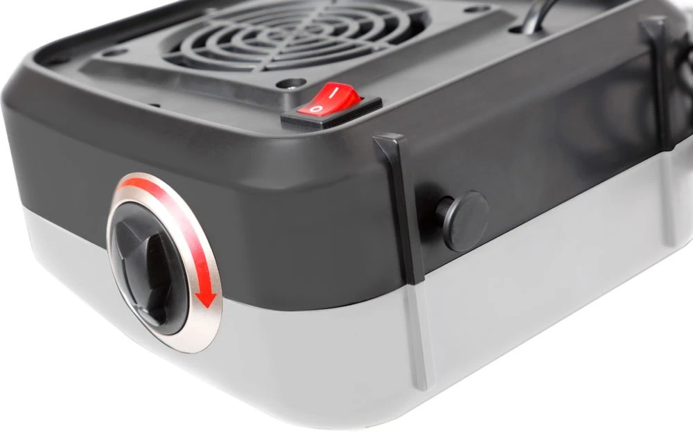 Compact ceramic fan heater with PTC heating element. Sturdy plastic housing makes it perfect for caravans, camper vans, or awnings. The thermostat allows you to set your preferred warmth quickly, while the integrated fan spreads heat efficiently, creating a cozy atmosphere wherever you go.