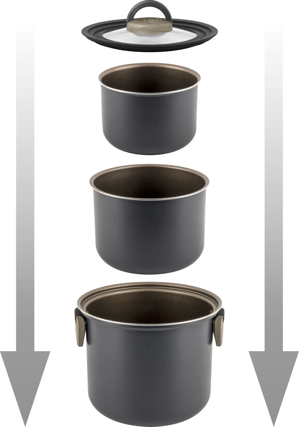 The stackable Torralta cookware set is the perfect solution for motorhome and boat owners seeking compact, practical cooking gear. Designed for small stoves, it offers an ideal balance of surface area and volume, allowing you to cook larger quantities with ease. The smart edge design ensures that the pans sit securely without slipping.
