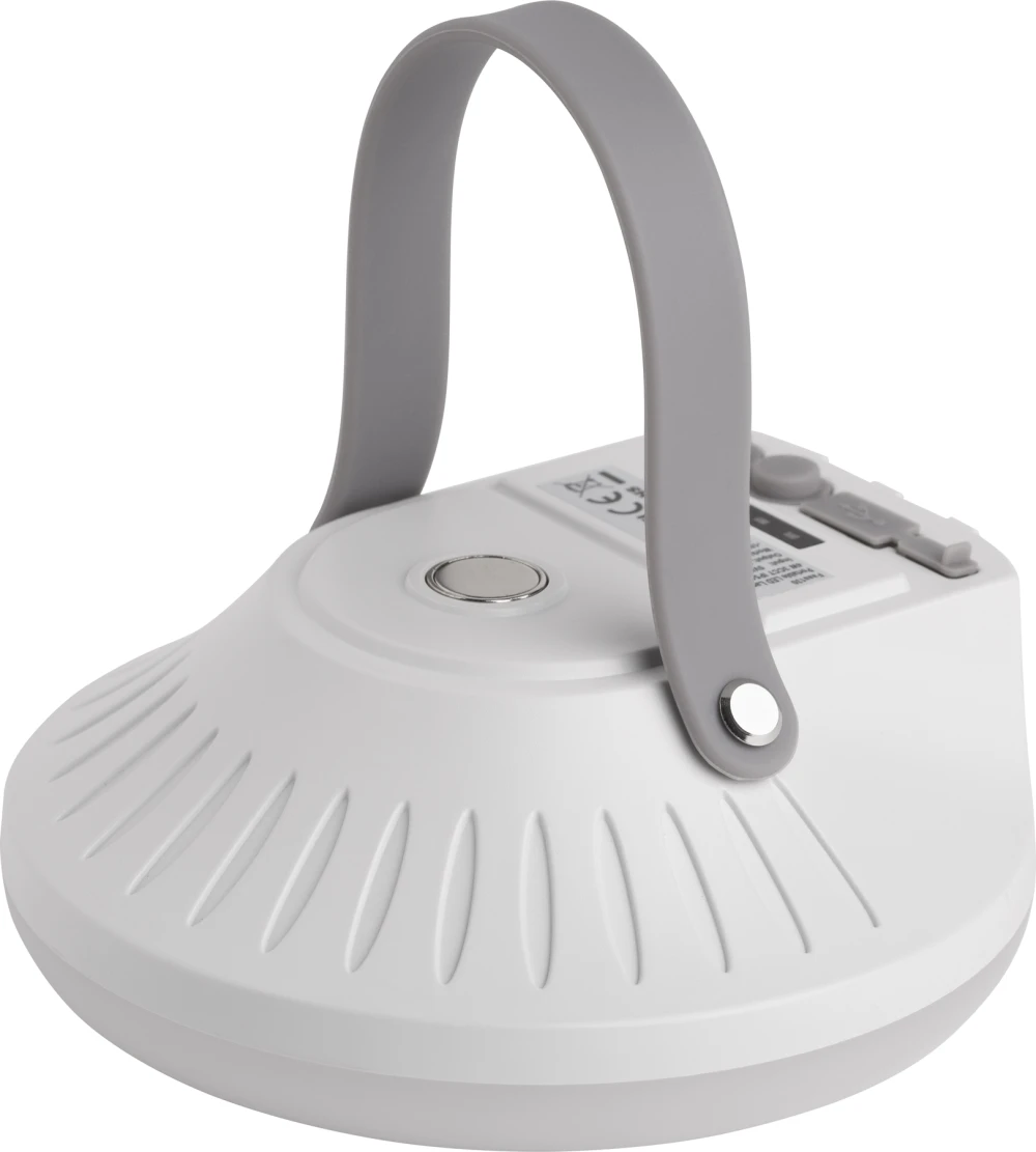 This portable lamp provides flexible lighting for indoor and outdoor use. It is equipped with a practical carrying handle and is ideal for camping or garden parties. The lamp is rechargeable and features multiple brightness levels for different needs. Show more